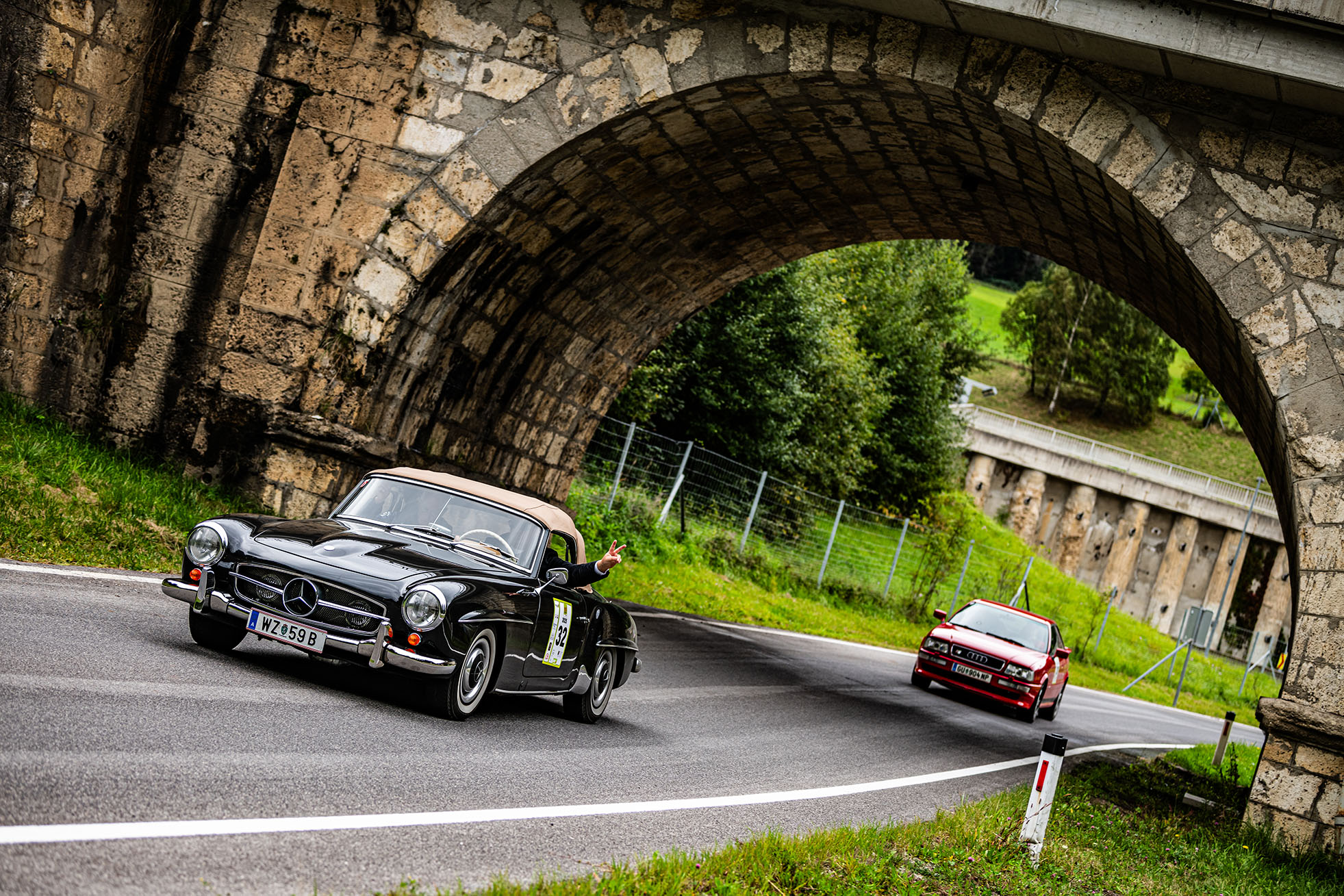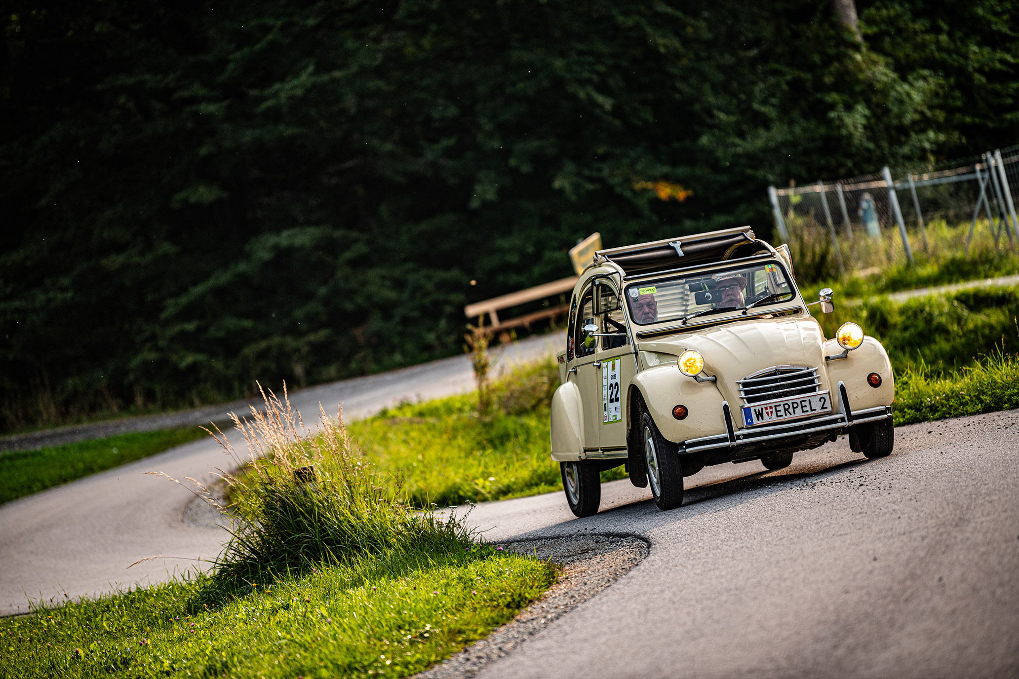 Der zweite Tag der Hochsteiermark Classic 2025 präsentierte sich bei herrlichem Kaiserwetter mit noch schöneren Etappen im Herz der Hochsteiermark, rund um das Mariazeller Land. Der Samstag beginnt mit einem tollen Frühstück vorbereitet von der Lebenshilfe Mürztal in Mürzzuschlag. Ab 8:45 geht es für die TeilnehmerInnen los mit den div. Sonderprüfungen. Über Mürzsteg und den Lahnsattel geht es Richtung Mariazell, wo sich das Ziel einer Sonderprüfung inkl. Moderation durch Organisator Werner Ully, direkt am Hauptplatz unter der Wallfahrtskirche befand. Am Flugplatz Mariazell absolvierten die Teams eine der beliebtesten Sonderprüfungen: es galt die Viertel-Meile, auf der Landebahn, 2 mal in der möglichst identischen Zeit zu befahren. Nach einem hervorragenden, regionalen Mittagessen führte die Strecke inkl. div. Sonderprüfungen über Aflenz, die Veitsch und Langenwang zurück nach Mürzzuschlag, wo die Reitergruppe Mürzzuschlag-Ganz das Abendessen vorbereitete. Der Abschluss des Tages befand sich beim Café Pfiff, in Mürzzuschlag, inkl. Zieldurchfahrt und Moderation vor dem zahlreich anwesenden Publikum.