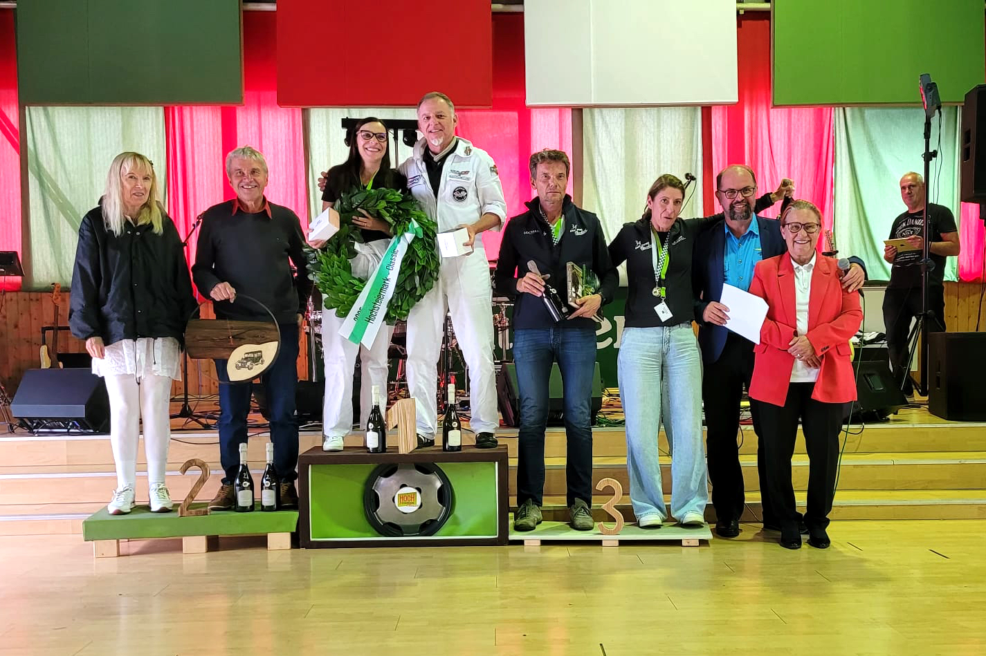 Der Finaltag der 7.Ausgabe der Hochsteiermark Classic startete beim Gasthof Granitzbauer hoch über Hönigsberg. Die aufreissenden Wolken und die ersten Sonnenstrahlen ließen auf besseres Wetter, als der Wetterbericht vorhergesagt hatte, hoffen. Und so war es auch: bei trockenen und guten Verhältnissen führte die Strecke über St. Barbara, wo die allgemein "beliebte" Sonderprüfung <<Tennisball überfahren>> zu absolvieren war, über das Alpl und das Hauereck nach Ratten. Hinter dem Pfaffensattel wartete eine Sonderprüfung auf einer extra gesperrten Strecke, also mit freier Fahrt, auf die TeilnehmerInnen. Mit einem kurzen Abstecher zum Semmering ging es Richtung Ziel beim Gasthof Urani in Neuberg. Davor musste noch eine exakte Strecke von 100m in genau 9sec befahren werden. Im Ziel angekommen stieg die Spannung, wer die begehrten gläsernen Lenkräder 2025 bekommen würde. Kurz vor 15 Uhr, nach einem tollen italienischen Buffet, war es dann so weit: Silvia und Werner betraten die Bühne und verkündeten die Endergebnisse: Bernd Lackner & Andrea Suppan-Lackner gewinnen die Hochsteiermark Classic 2025 vor Manfred & Edith Stocker (Platz 2) und Peter & Bettina Krammer (Platz 3). Herzlichen Dank an alle TeilnehmerInnen, Sponsoren, das Team, Helfer und Unterstützer für 3 wundervolle, spannende und lustige Tage in unserer wunderschönen Hochsteiermark! Wir sehen uns 2026.