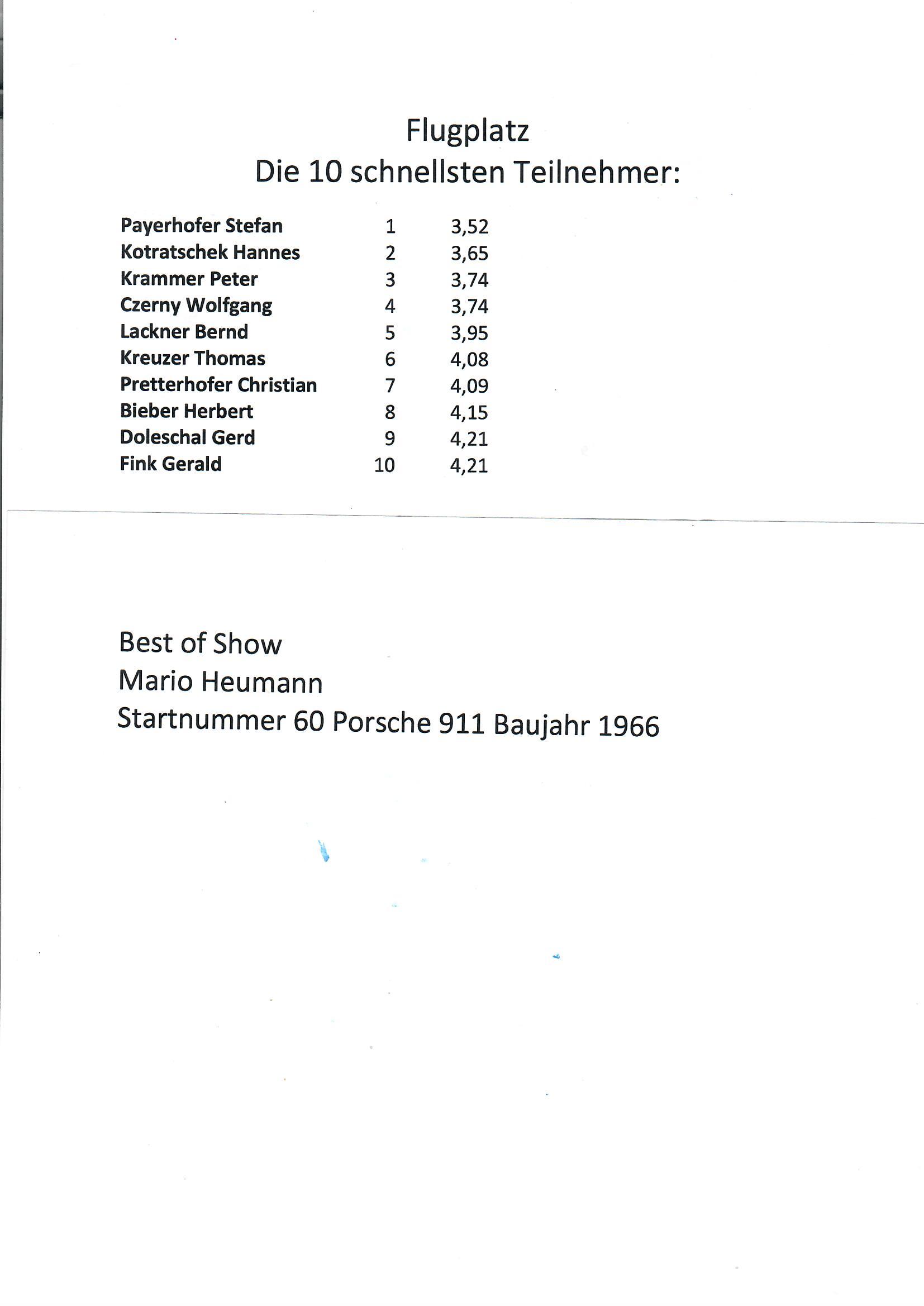 Die Ergebnisse (kein Protest zulässig): Endergebnis Gesamt, Detailergebnisse SonderprüfungenTeamergebnis Gesamt, Ergebnisse Flugplatz Beschleunigung